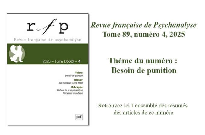 RÉSUMÉ – Le sentiment inconscient de culpabilité a été substitué par Freud à « l’affect inconscient de culpabilité » : un affect est, par définition, conscient. Sentiment inconscient de culpabilité et besoin de punition sont liés, mais il faut distinguer fantasme de culpabilité et conscience de culpabilité, fantasme de punition et besoin de punition. La conscience de culpabilité liée à un remords peut rester dans le champ névrotique si sa charge économique ne déborde pas les ressources et limites de l’appareil psychique ; s’il y a débordement économique du moi s’ouvre la voie comportementale du besoin de punition. Le fantasme Un enfant est battu, porteur d’une excitation qui se résout dans l’onanisme ou la fantasmatisation, combine de multiples éléments et se retrouve au cœur de nombreux développements constructeurs pour le psychisme. On peut le considérer comme un fantasme originaire essentiel.